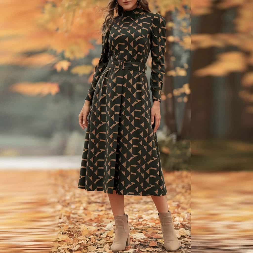 Bold and beautiful, a color-blocked dress is a statement piece that showcases your personality. Opt for warm colors like rust, plum, or olive that resonate with the fall aesthetic. The contrast between colors adds a modern twist.