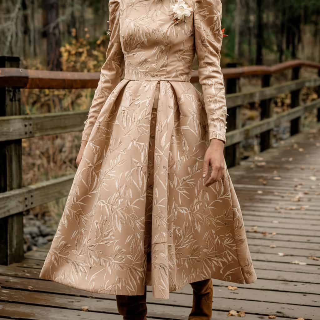 Capture that vintage essence with an A-line dress featuring delicate long sleeves. This classic silhouette is flattering on all body types and is perfect for fall weddings! Rich fabrics in shades of mustard or navy invite warmth and sophistication.