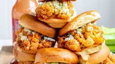 If you’re looking for a spicy, vegetarian option, these Buffalo cauliflower sliders are just the ticket. Crispy cauliflower bites tossed in a spicy buffalo sauce are nestled between soft buns, creating a satisfying and flavorful dish.