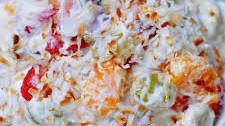 Rating: 5. Ingredients: Mandarin oranges, heavy whipping cream, green grapes, coconut flakes, bananas
