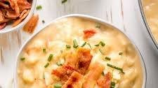 Rating: 5. Ingredients: White cheddar cheese, bacon bits, chicken broth, heavy cream, butter Total Time: 30 min.