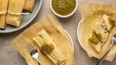 Chicken Tamales with Tomatillo-Cilantro Salsa from Food & Wine