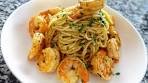 Rating: 4.5. Ingredients: White wine, basil pesto, lemon, olive oil, raw shrimp Total Time: 25 min.