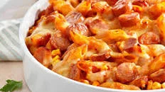 Rating: 3.5. Ingredients: Kransky, herb pasta sauce, corn kernels, dry pasta, tasty cheese Total Time: 45 min.