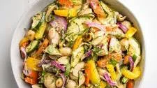 Rating: 4.9. Ingredients: Red wine vinegar, feta cheese, bell pepper, grape tomatoes, red onion Total Time: 16 mins.