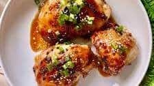 Ingredients: Chicken thighs, soy sauce, brown sugar, honey, sesame oil Total Time: 1 hr 15 min.