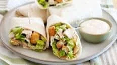 Rating: 5. Ingredients: Caesar dressing, flour tortillas, romaine lettuce, parmesan cheese, cooked chicken Total Time: 20 min.