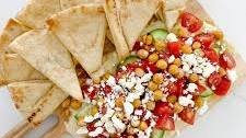 Ingredients: Pita bread, feta cheese, tortilla chips, cucumber, kalamata olives Total Time: 10 min.
