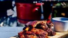 Rating: 4.9. Ingredients: Chicken thighs, peach bbq sauce, sweet rub Total Time: 1 hr 10 min.