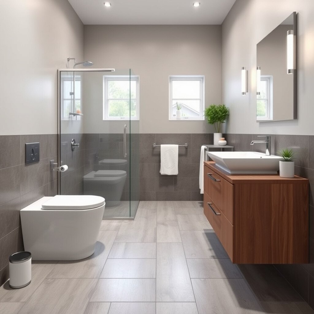 Embrace minimalism by opting for floating vanities and wall-mounted toilets. This not only saves space but also gives a sleek, modern look. It’s ideal for anyone who wants a bathroom that’s both stylish and accessible.