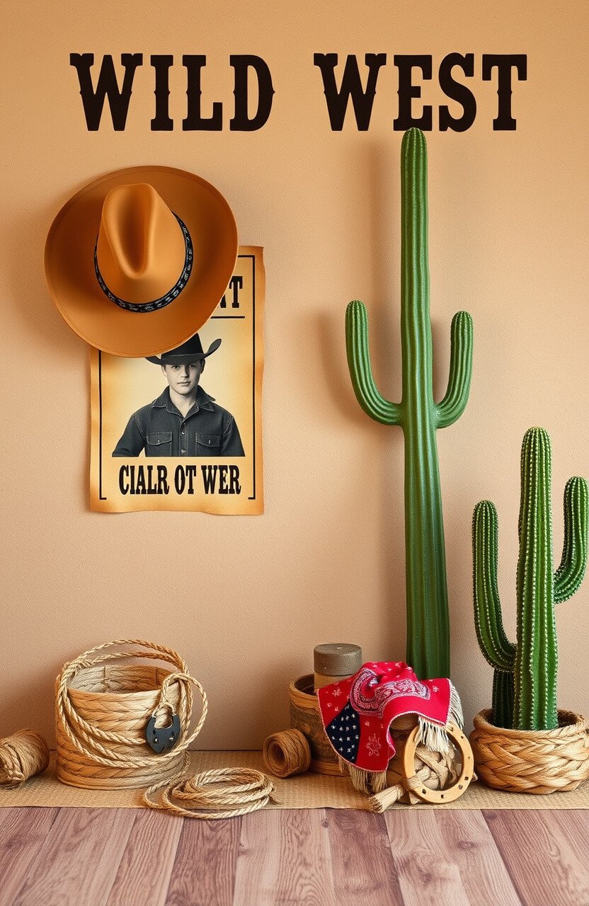Personalize with students’ “wanted” posters and cowboy hats. DIY horseshoe crafts add to the western charm.