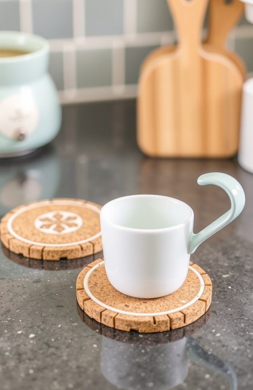 Choose unique materials like cork, tile, or fabric. Coasters are perfect for adding a personal touch to your kitchen.
