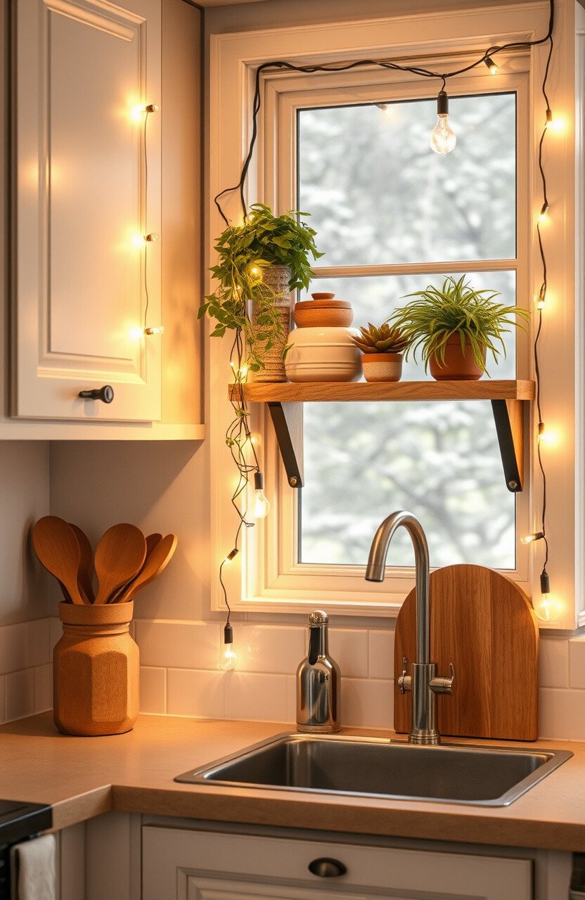 String lights add ambiance and warmth to your kitchen. They’re perfect for creating a cozy atmosphere.