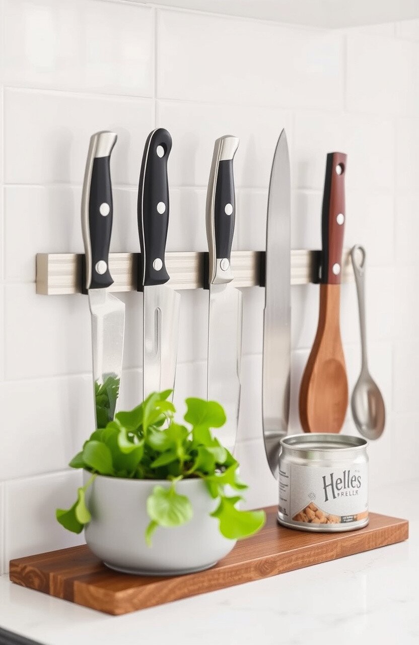 A magnetic knife strip keeps your knives organized and within reach. It’s a sleek alternative to bulky knife blocks.