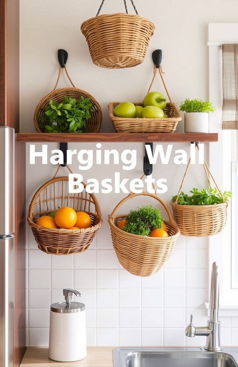 Hanging wall baskets offer stylish storage solutions. Use them for fruits, vegetables, or decorative items.