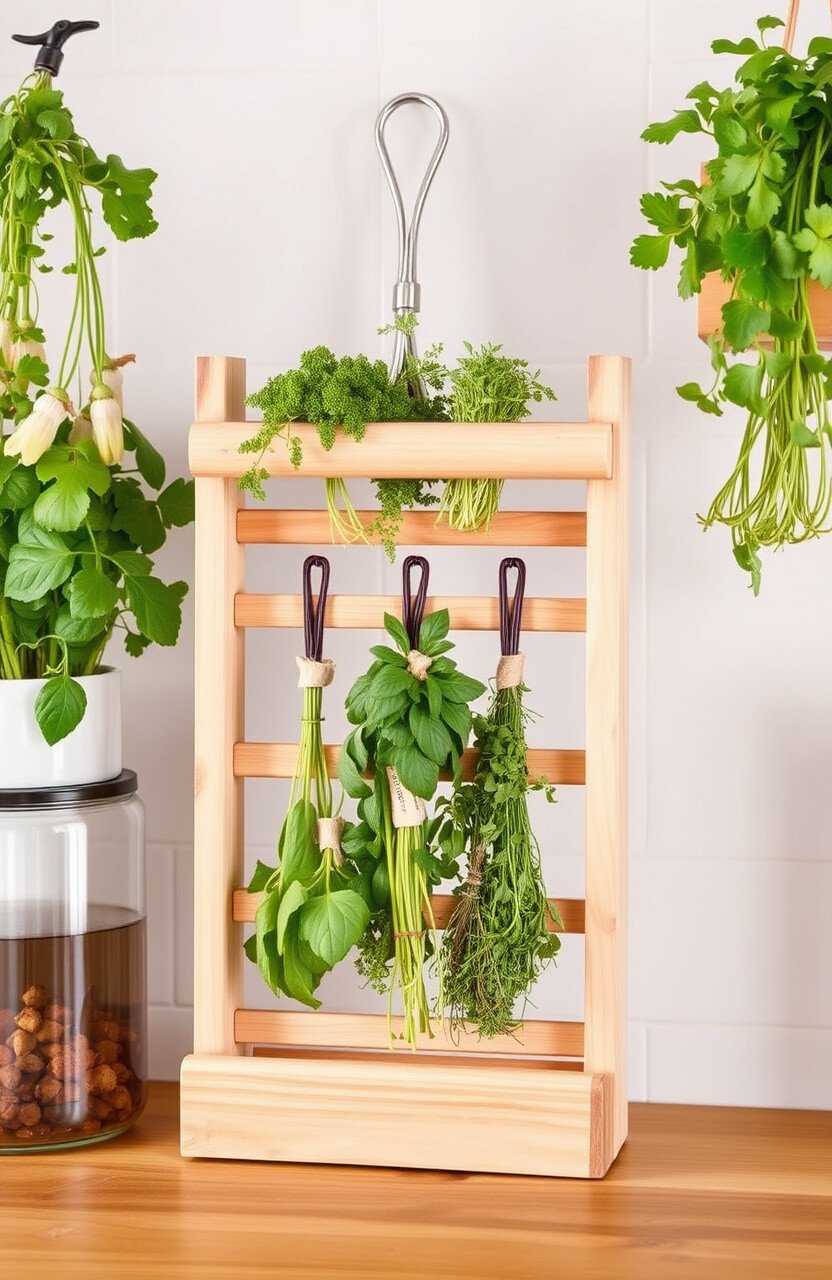 An herb drying rack is perfect for preserving fresh herbs. It’s a practical and decorative addition to any kitchen.
