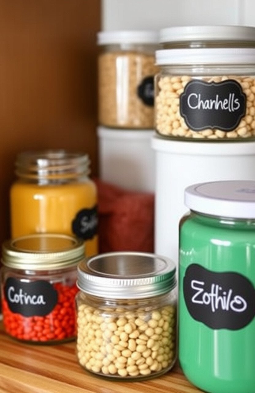 Personalize by labeling jars with chalkboard stickers or paint. It’s a creative and practical storage solution.
