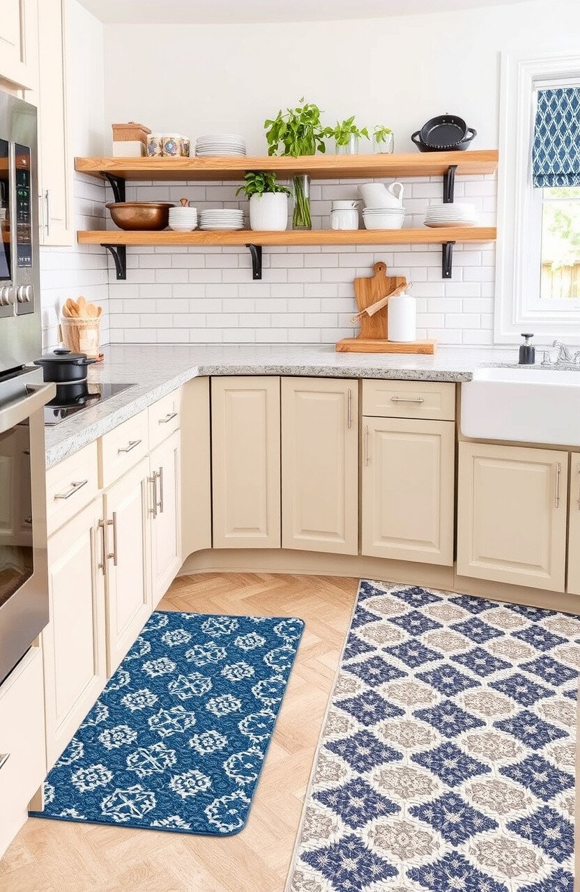 Patterned floor mats add comfort and style to your kitchen. They’re perfect for standing on while you cook.