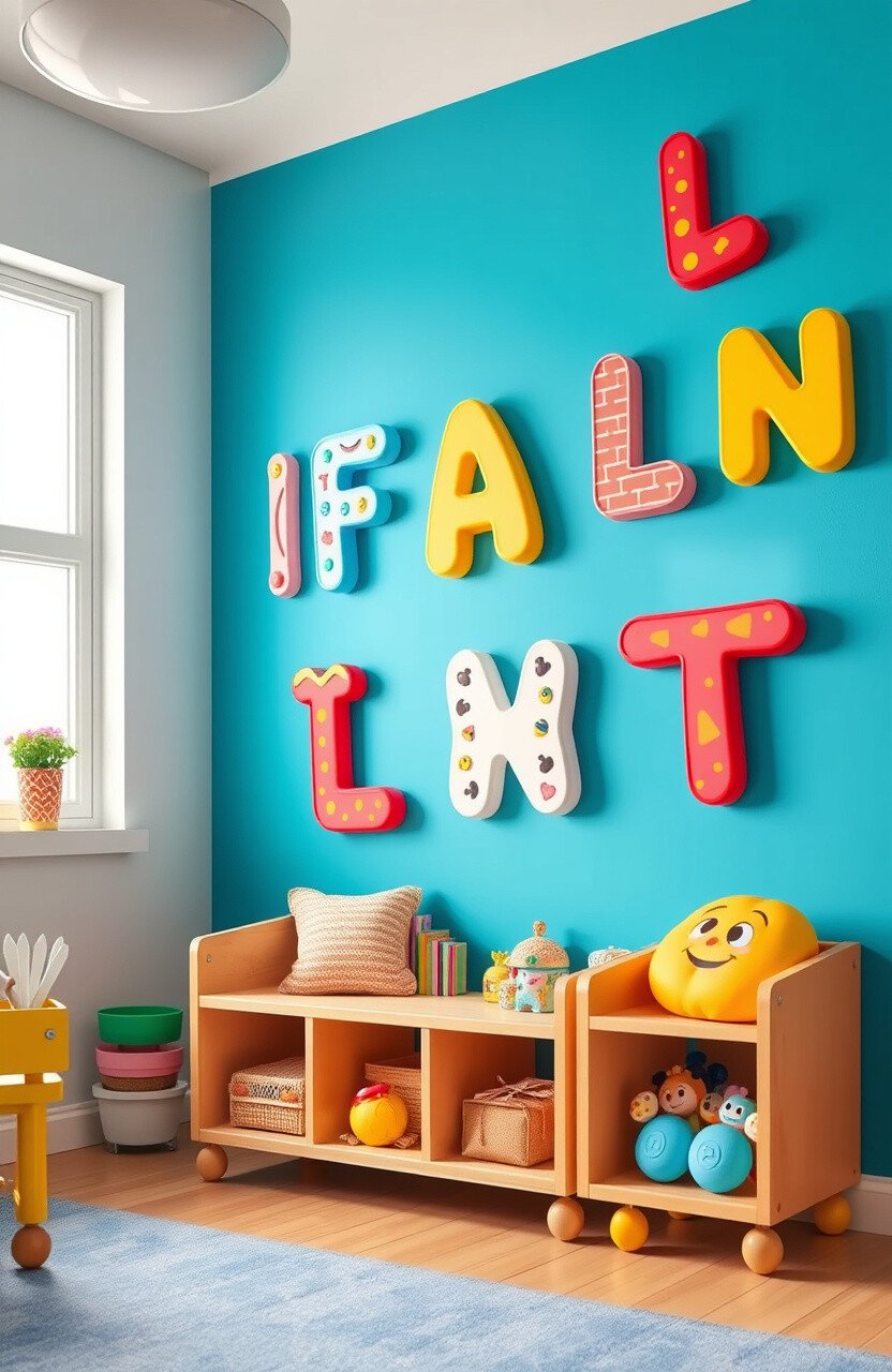 Bring some fun to your decor with playful cartoon letters. They’re colorful, lively, and perfect for kids’ spaces.