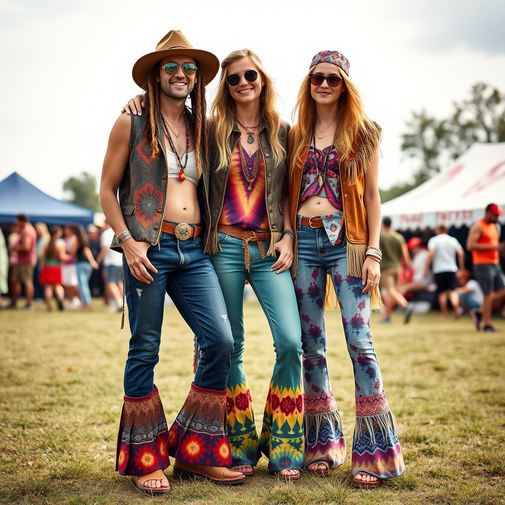 Embrace bell-bottoms, tie-dye, and fringed vests for a groovy look.