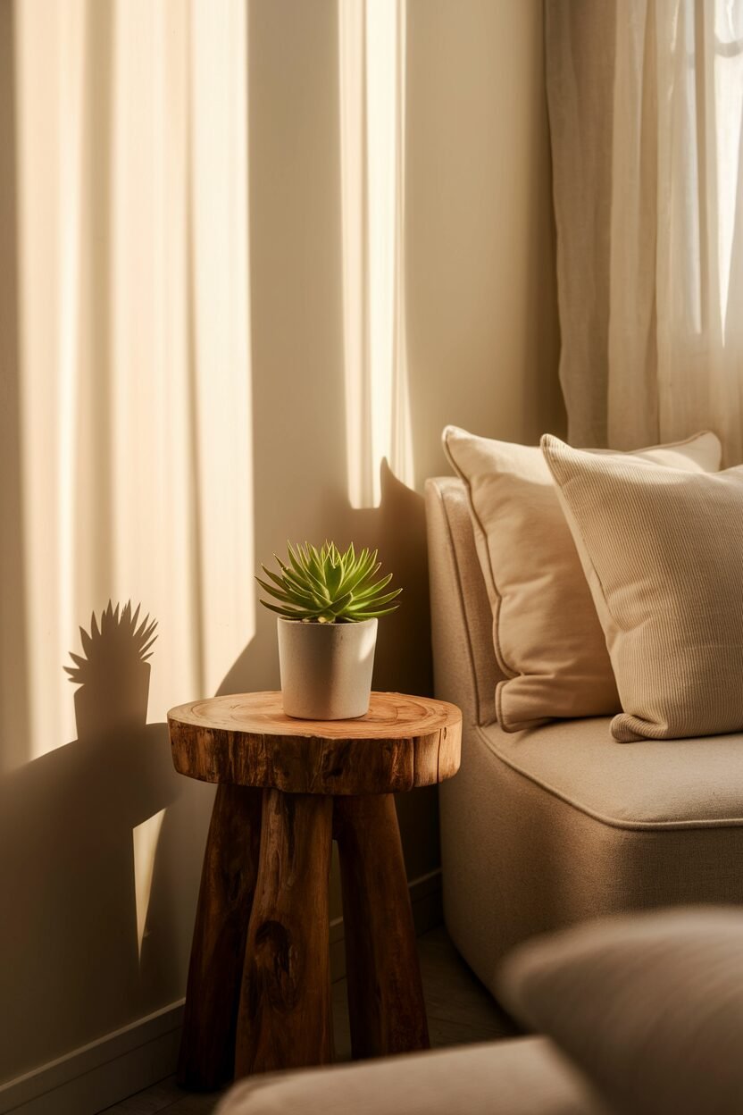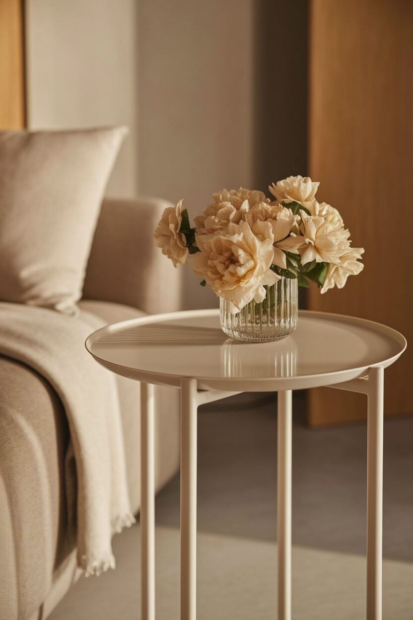 Opt for simple side tables in neutral tones to keep your decor streamlined. Look for pieces in light wood, white, or even soft gray for a chic finish.