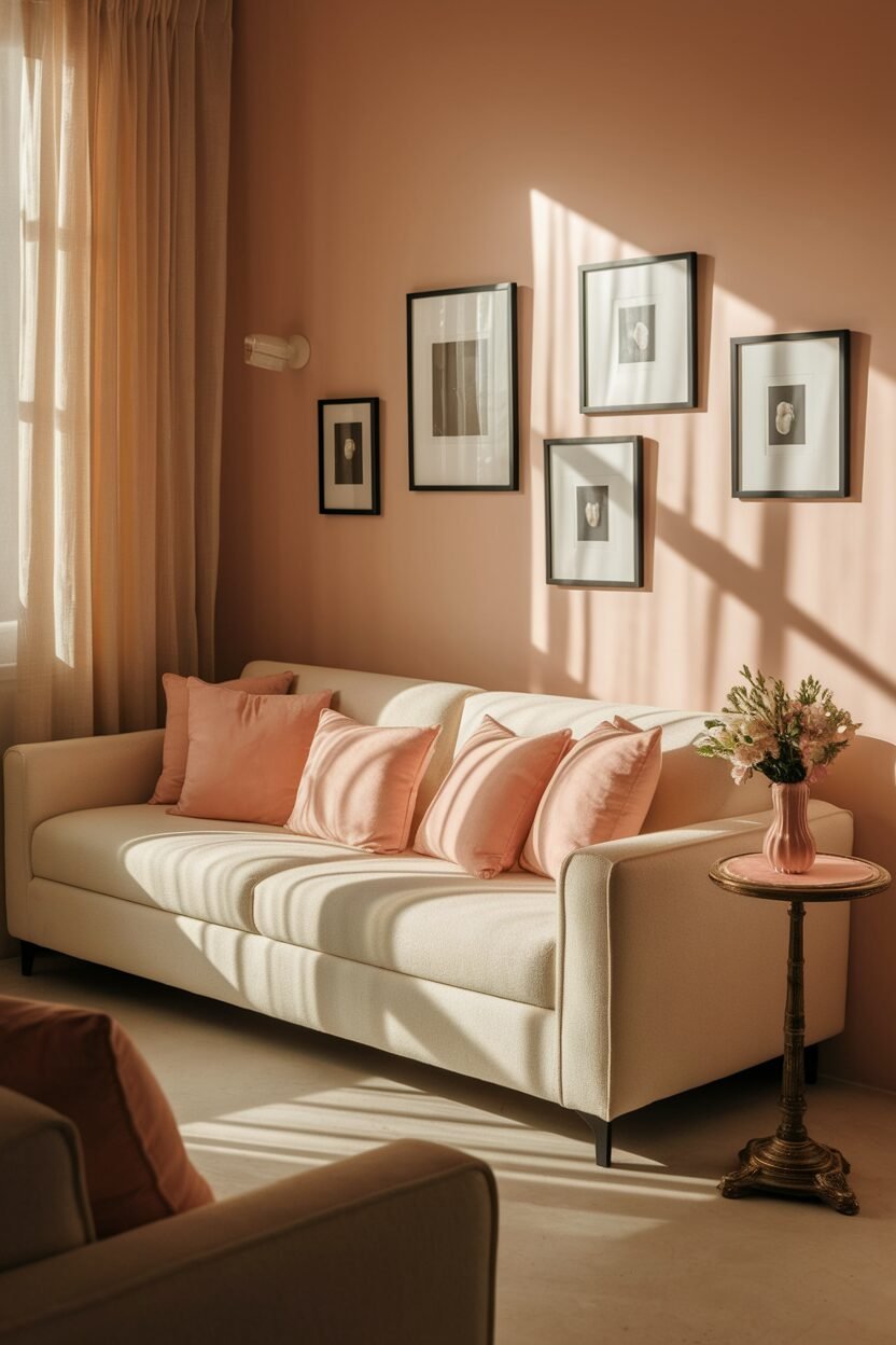 Soft pink accents can add a hint of warmth to your neutral palette. Consider adding pink cushions, art, or decorative items for a subtle yet stylish touch.