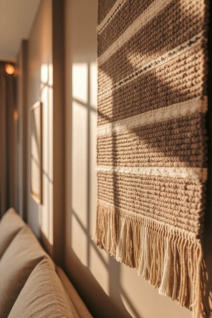 Textured wall hangings like macramé or woven pieces can add depth and interest. They can serve as a beautiful focal point in a neutral space.