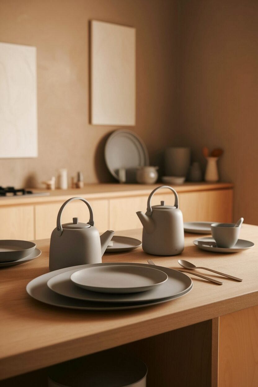 Choose soft gray kitchenware for a chic and modern aesthetic in your kitchen. Think plates, bowls, and mugs that can elevate your dining experience.