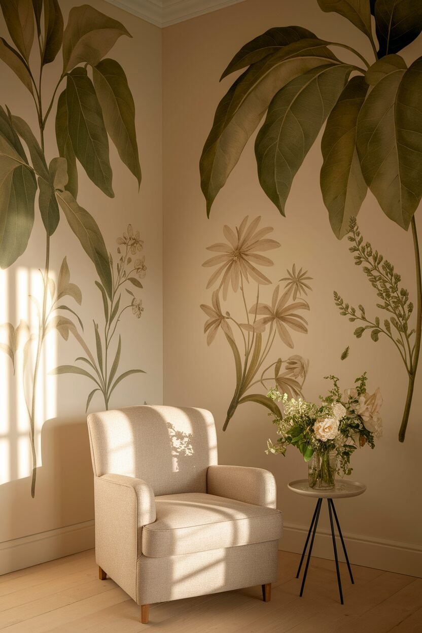 Incorporate neutral botanical prints in your decor for a fresh, organic touch. These prints can be used in artwork, cushions, or even wallpaper.