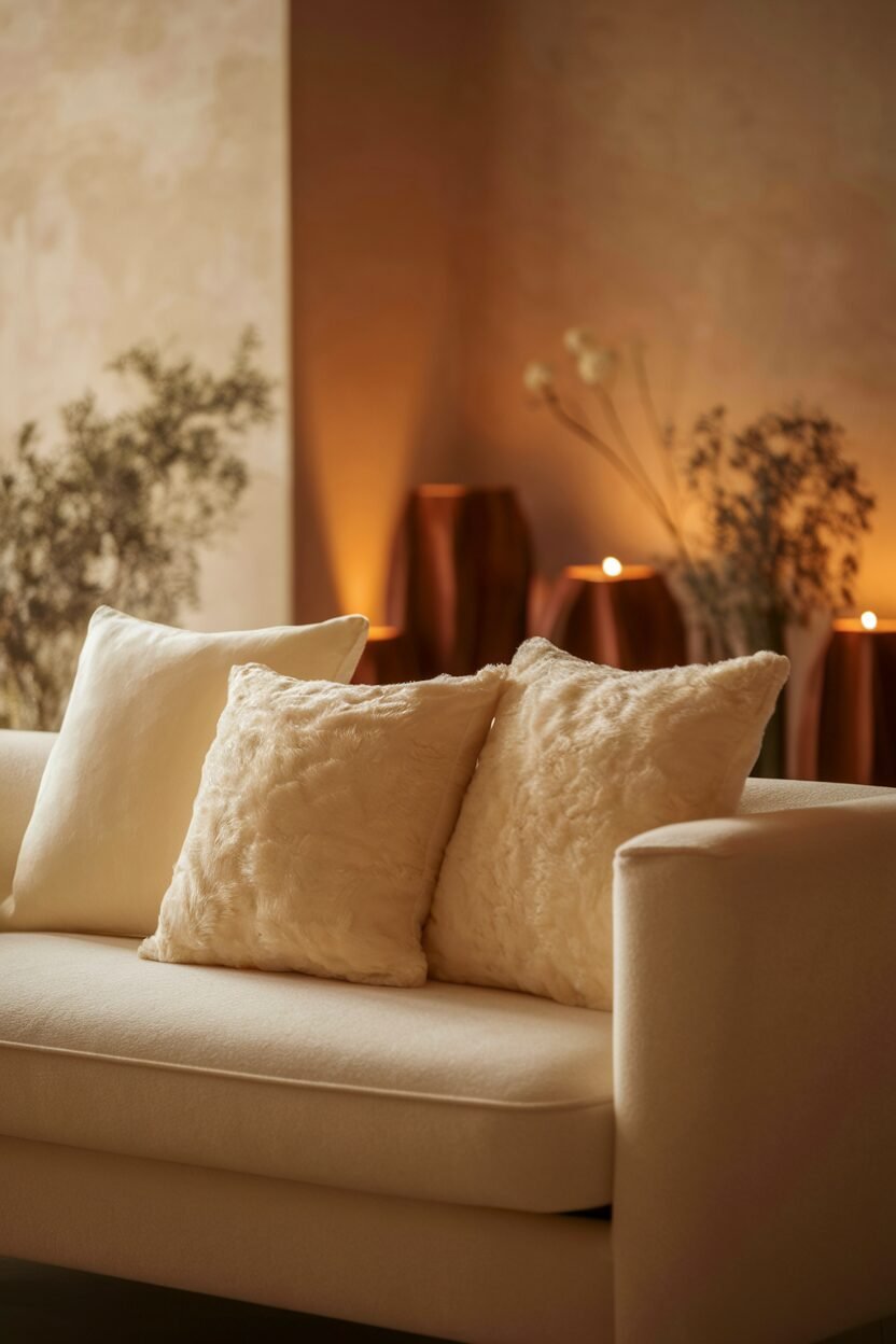 Decorate your couch or bed with creamy throw pillows to add a soft touch. They can enhance the comfort level while looking chic at the same time.