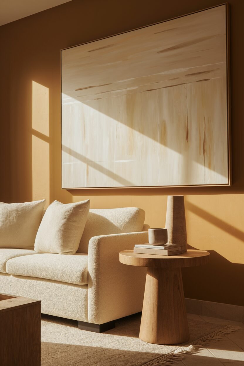 Choose artwork in muted tones that resonate with your neutral decor. Black-and-white photography or abstract pieces can add character without clashing with your color scheme.