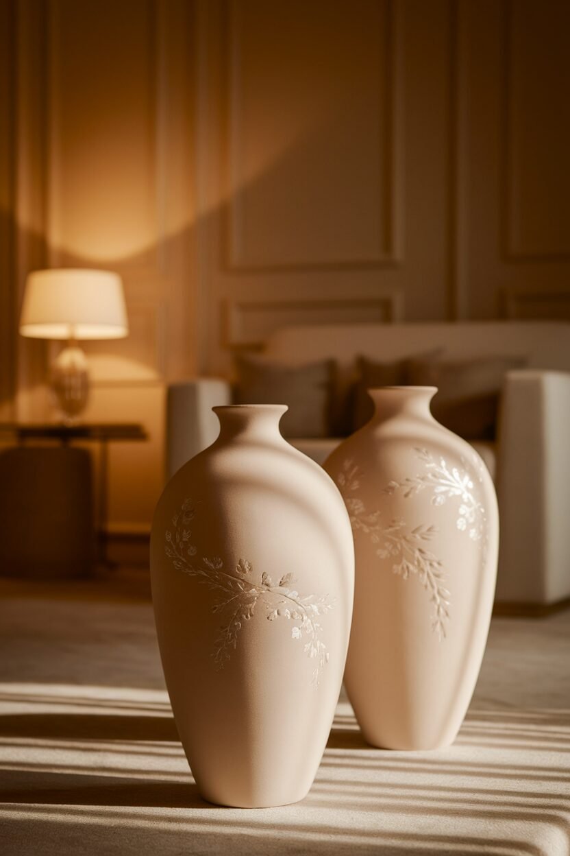Display elegant neutral vases on your tables or shelves for a touch of sophistication. Look for unique shapes and finishes that can stand out even in soft colors.