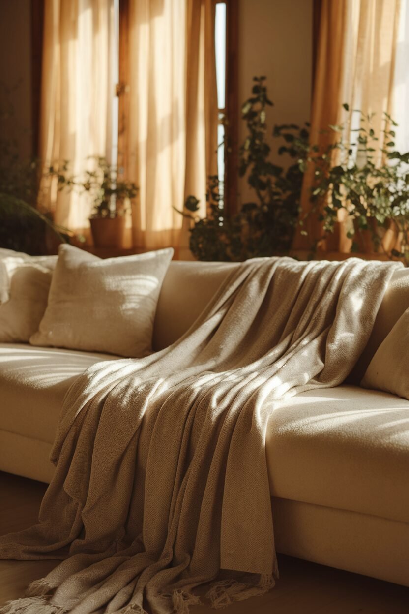 Using linen for curtains, cushions, or throws can elevate your neutral decor. This fabric has a soft, airy quality that feels luxurious yet relaxed.