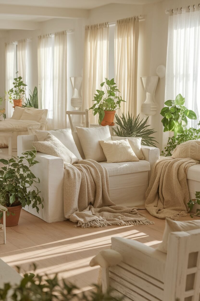 They can bring a bit of the outdoors inside while keeping your color scheme soft. Plus, they can add a calming vibe that’s great for relaxation.