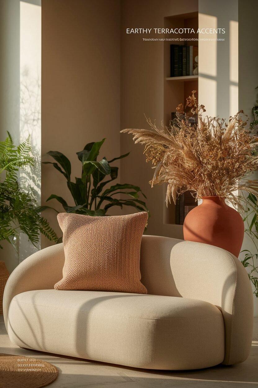 Adding terracotta pots or decorative items brings warmth to your neutral palette. The earthy tones of terracotta can create a beautiful contrast against lighter colors.