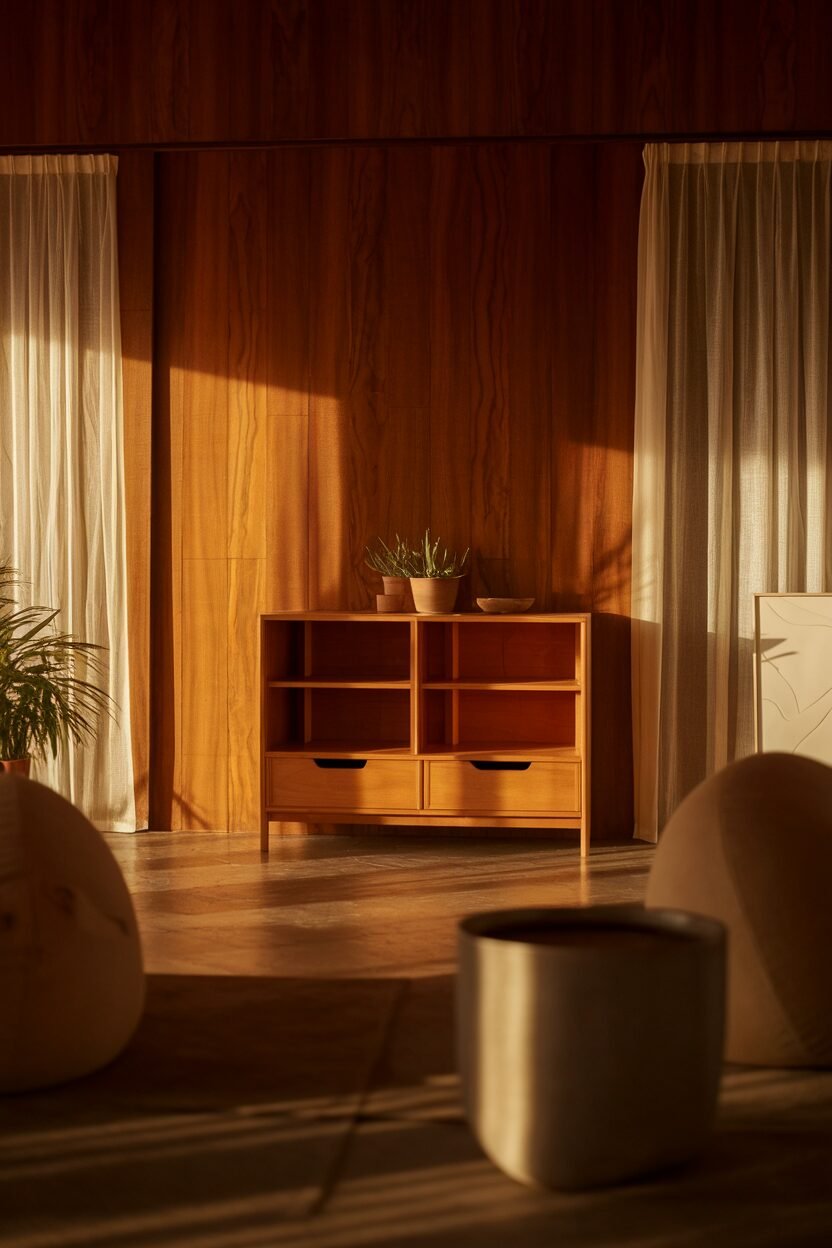 Mixing wood with natural elements like plants or stones can create a serene atmosphere. It’s like bringing a bit of nature into your daily routine.