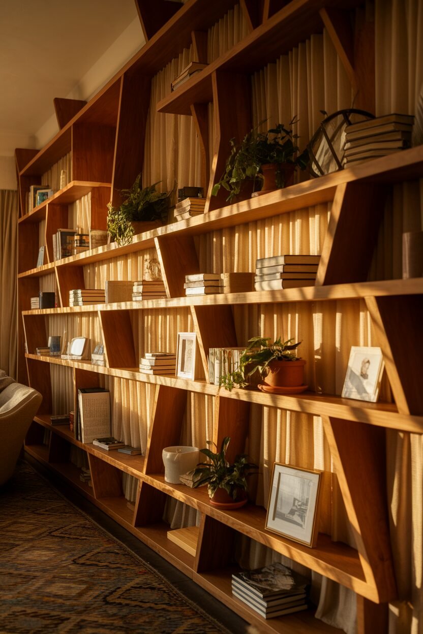 Open wooden shelves are perfect for displaying your favorite books and decorations. They keep your space feeling open while showcasing your personality.