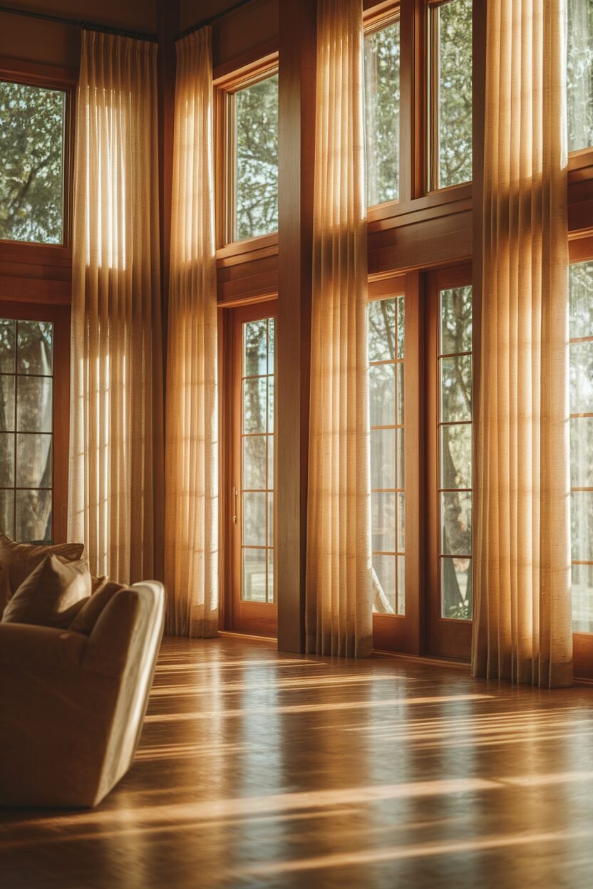 Wooden blinds or shutters can add elegance to your windows. They provide privacy while allowing natural light to filter through beautifully.