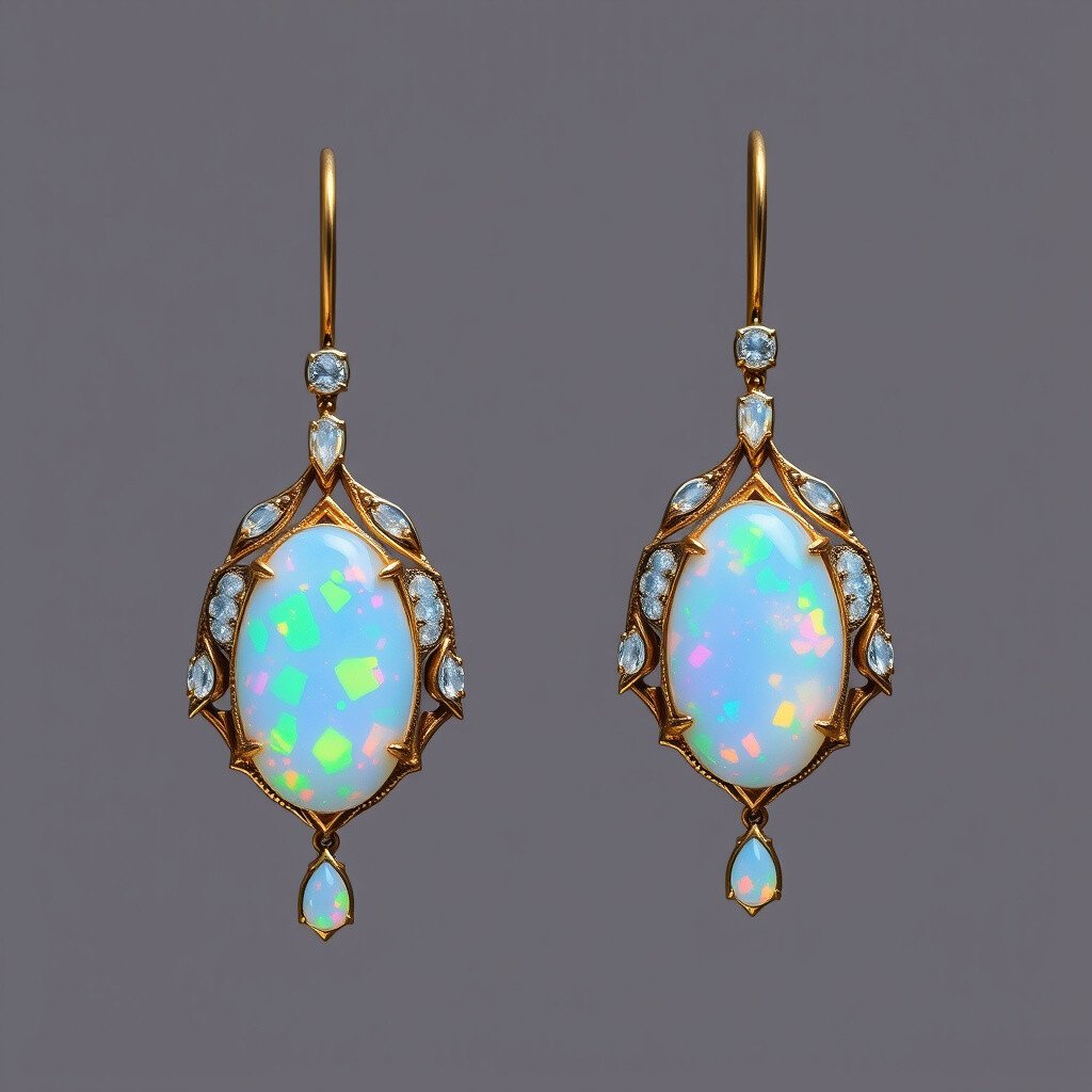Opal stones with their unique play of colors make these earrings irresistible. They are mysterious and enchanting, perfect for any occasion.