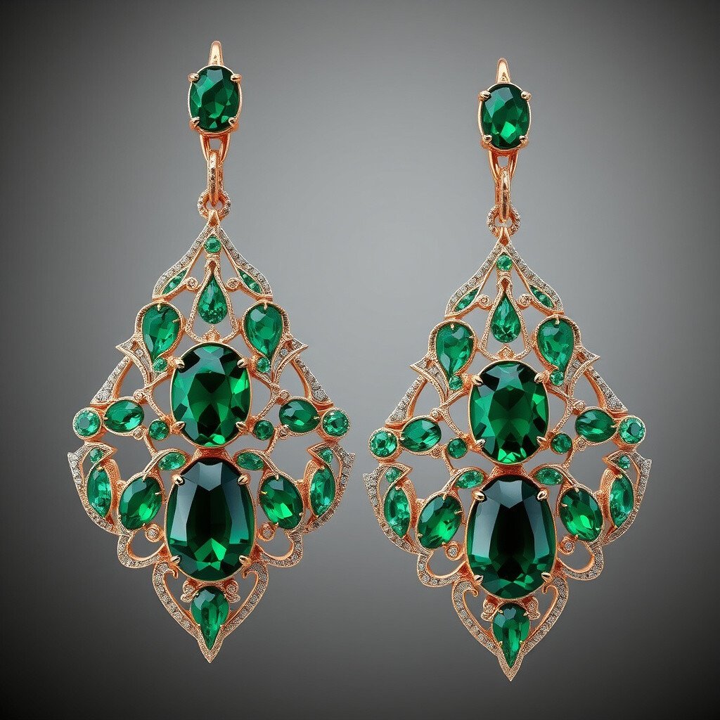 Picture deep green stones set in intricate patterns. These earrings scream luxury and style. The emerald color adds a pop, making them perfect for any occasion.