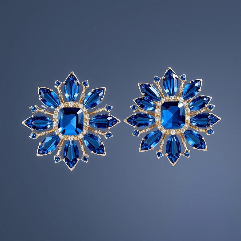 Imagine a starburst pattern with stunning sapphire stones. These earrings are dazzling and unique. The blue sapphires catch the light beautifully.