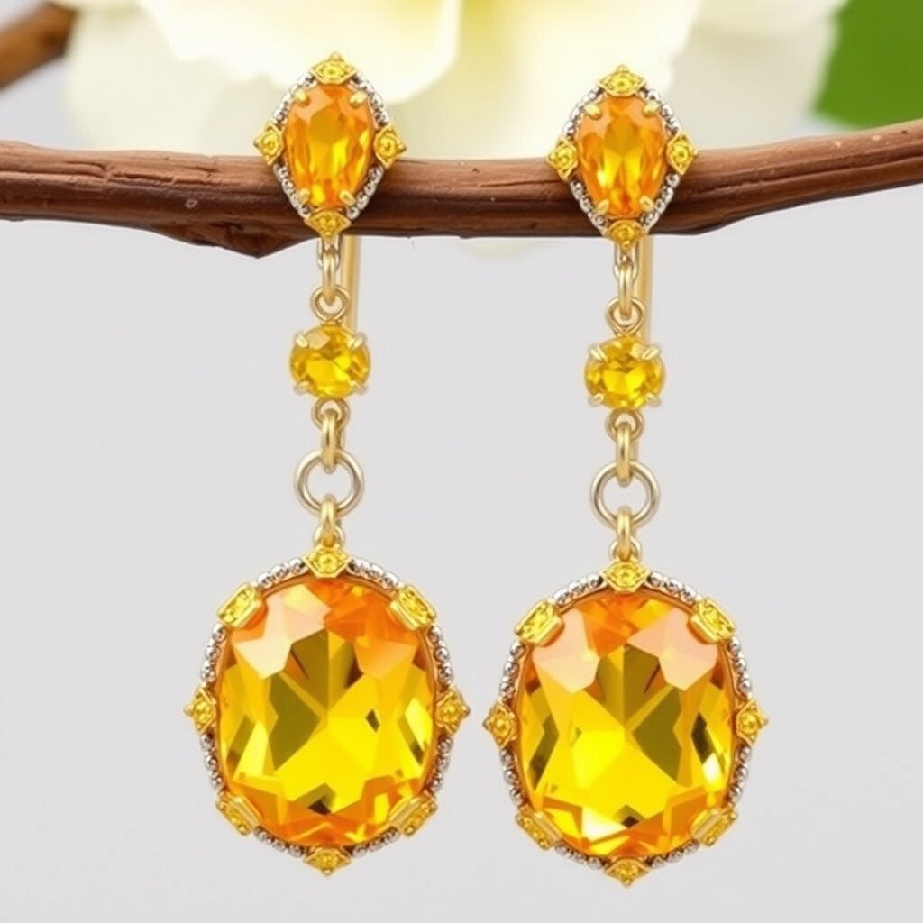 These earrings feature bright citrine stones that resemble sunshine. They are cheerful and vibrant, perfect for brightening up any outfit.