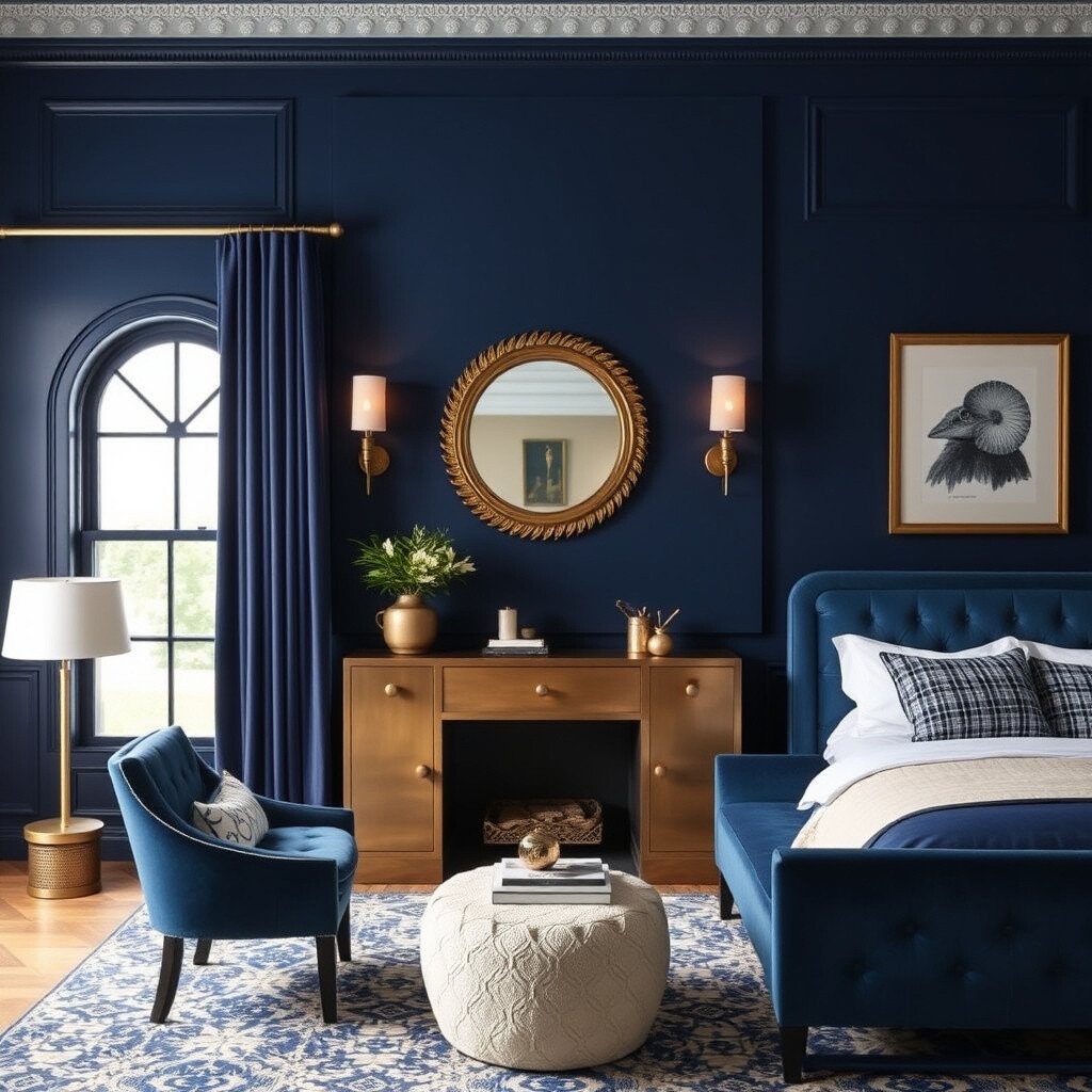 Navy blue is timeless and sophisticated. It can make a stunning statement in a dining room or bedroom.