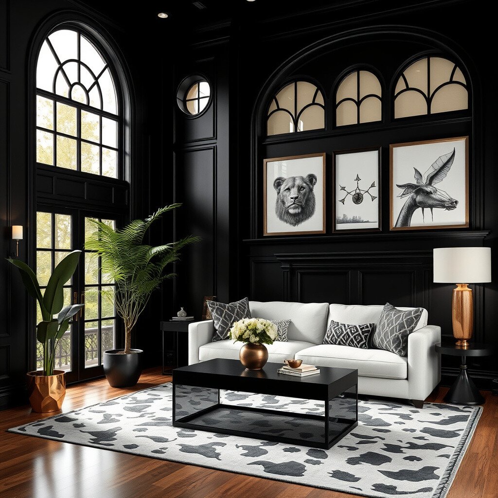 It’s best used in moderation, as too much black can make a room feel smaller. Consider using it in accessories or furniture pieces.