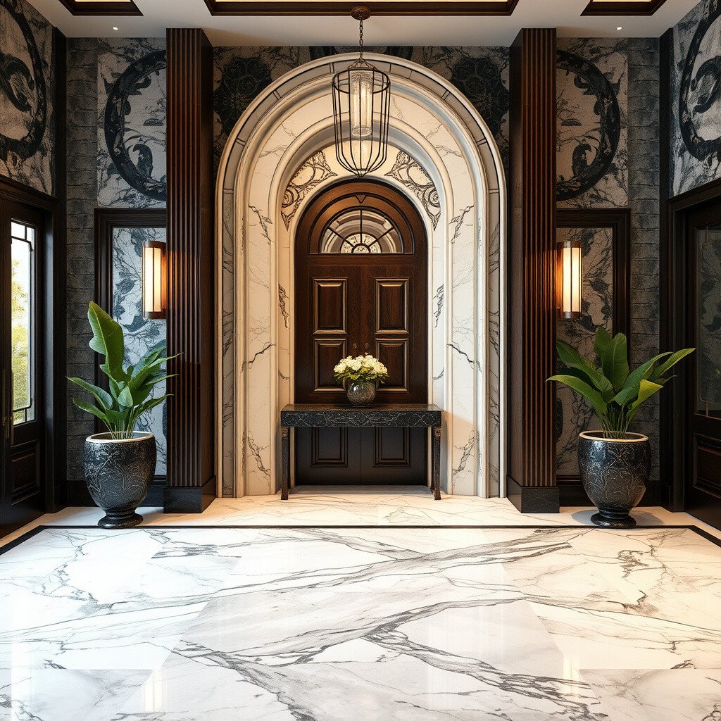 An arched doorway is a stunning architectural element that adds a sense of drama and history to your entrance. It echoes the grand entrances of Art Deco buildings.