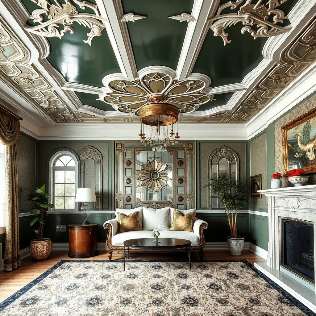 Geometric floors are a staple in Art Deco design. Picture black and white tiles laid out in striking patterns. These floors not only catch the eye but also add a dramatic flair to any room.