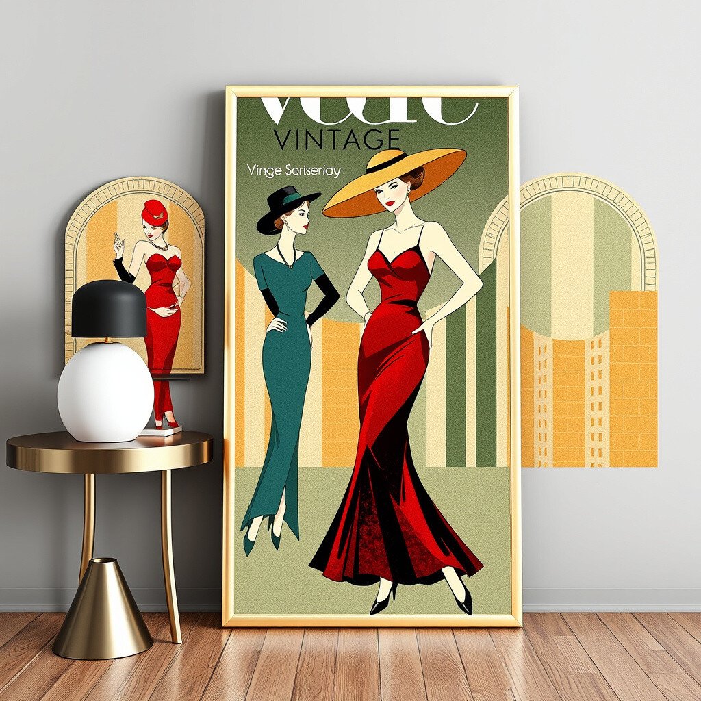 Step into a world of fashion with Vintage Vogue. This poster features iconic fashion elements from the Art Deco era.