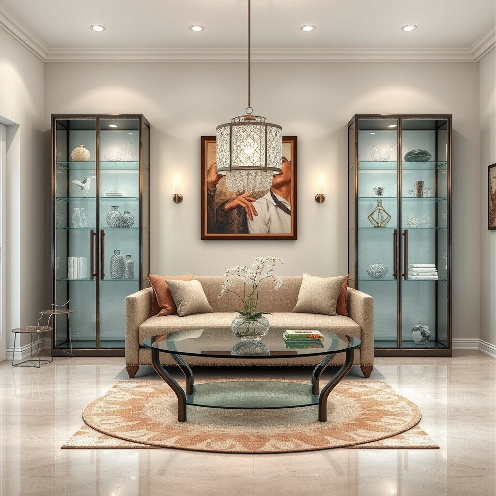Try a glass coffee table or glass-front cabinets. These pieces can lighten up a room and add sophistication.
