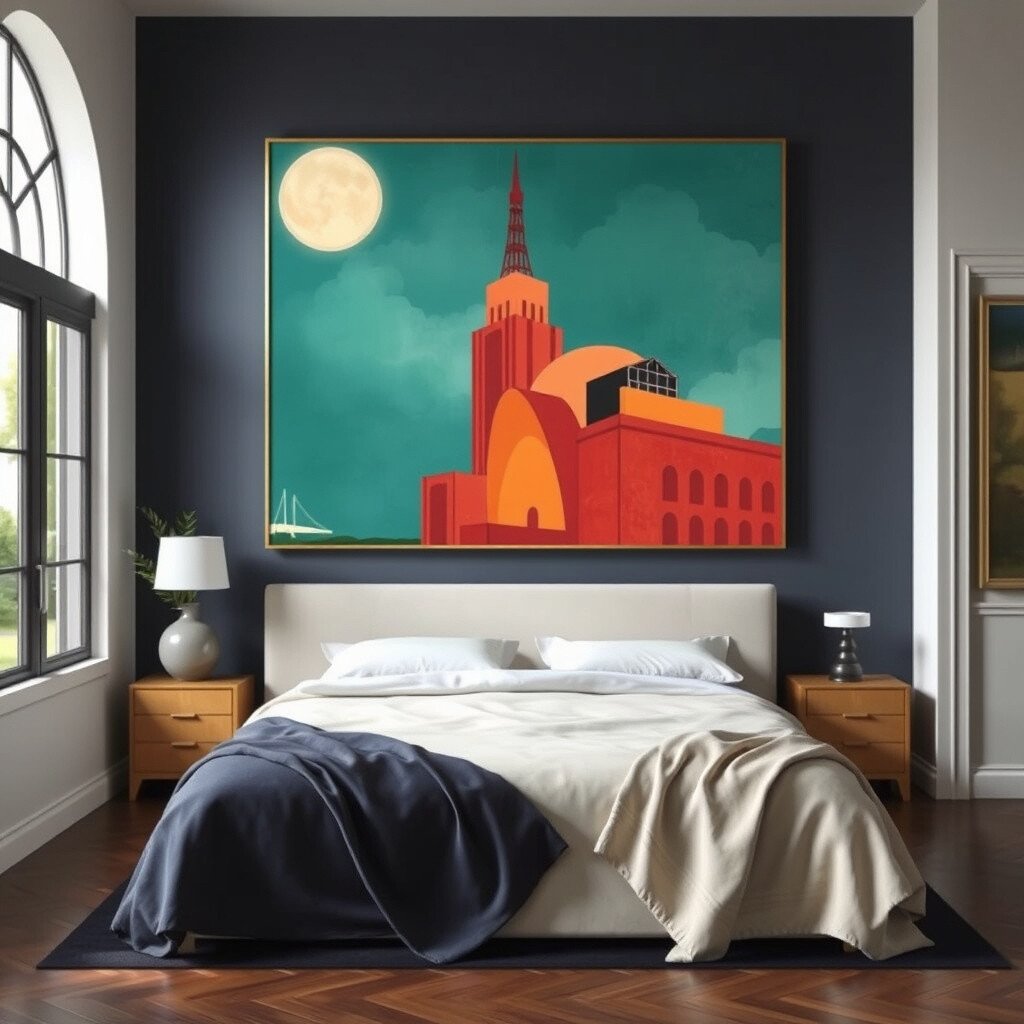 Hang a large piece of Art Deco art over your sofa or bed. It can serve as a stunning centerpiece.
