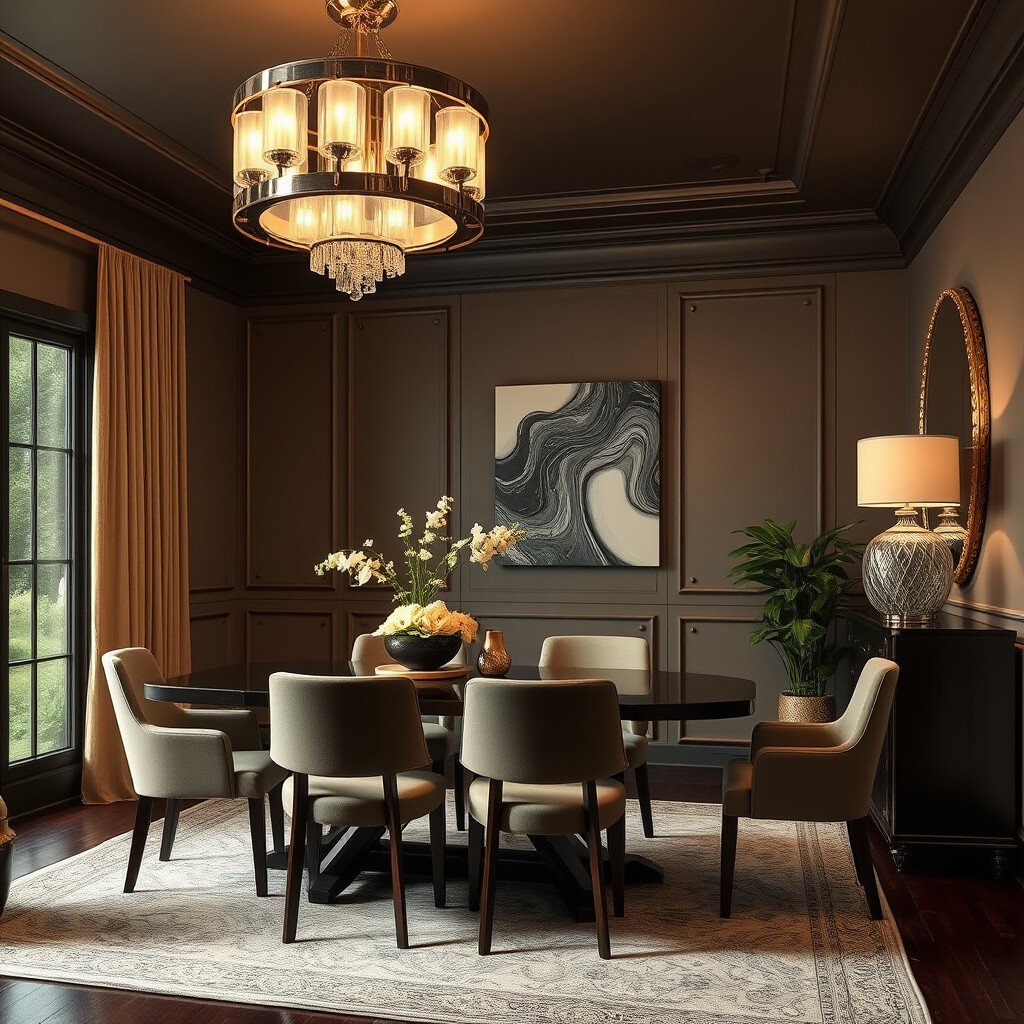 Choose lighting fixtures with geometric designs or metallic finishes. A bold chandelier can transform a dining room into something special.